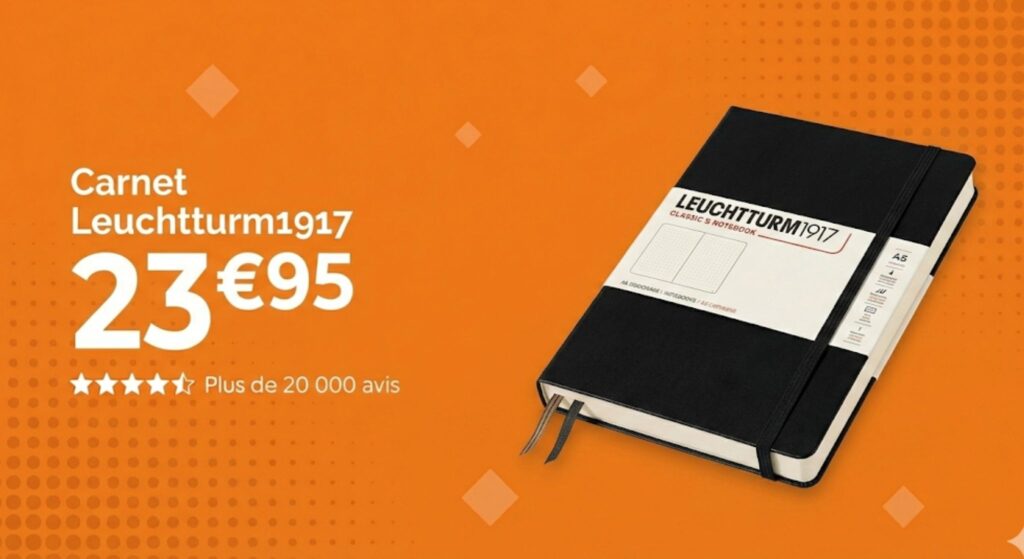 | Le carnet | Qualité premium pour réussir. | 23€95 | Booster ma productivité |